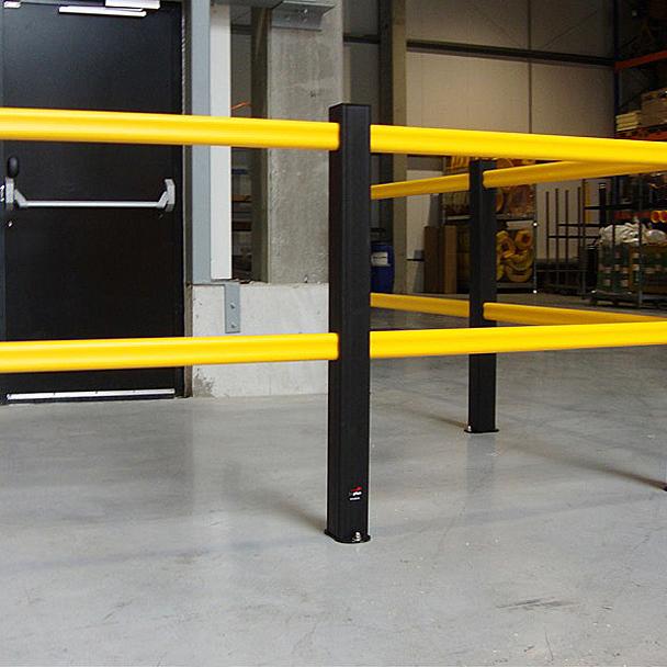 There are no nuts, bolts, screws, brackets or welding used in assembly, offering an assembled barrier free from sharp edges or projections, minimising the risk of contact injury. The handrail has excellent aesthetics and is available in a high visibility yellow option.
