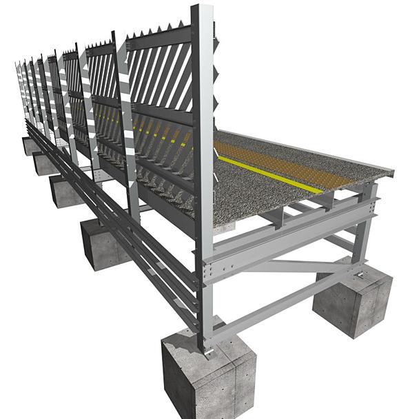 For passenger applications, the surfacing of newly erected structures is also simply achieved with EverDeck load bearing panels. They provide a black, slip resistant, highly durable surface incorporating an off-set tactile paving strip. All required safety line markings and a hidden fixing system are included.