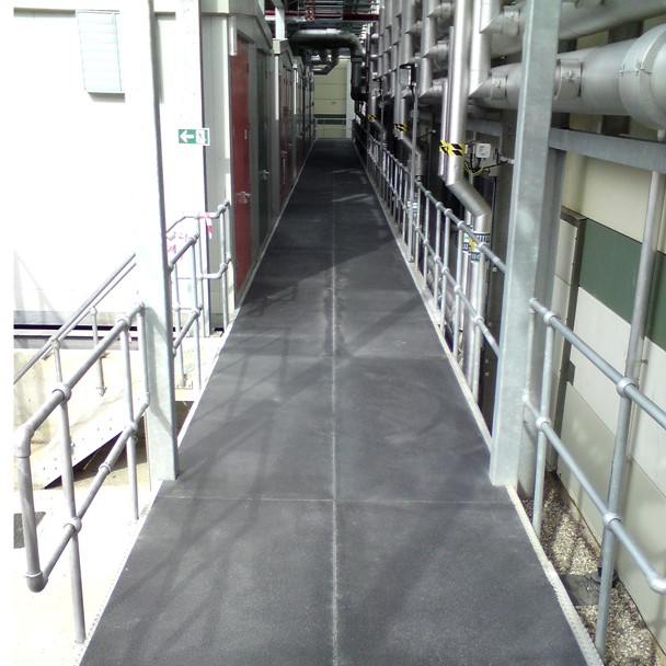 After taking a large sample to site for them test their trolleys on, it was decided that the 4mm thick fibreglass backed Anti-slip sheets did a great job of dampening this vibration whilst at the same time, proving a safe anti-slip surface for personnel in all weather conditions.
