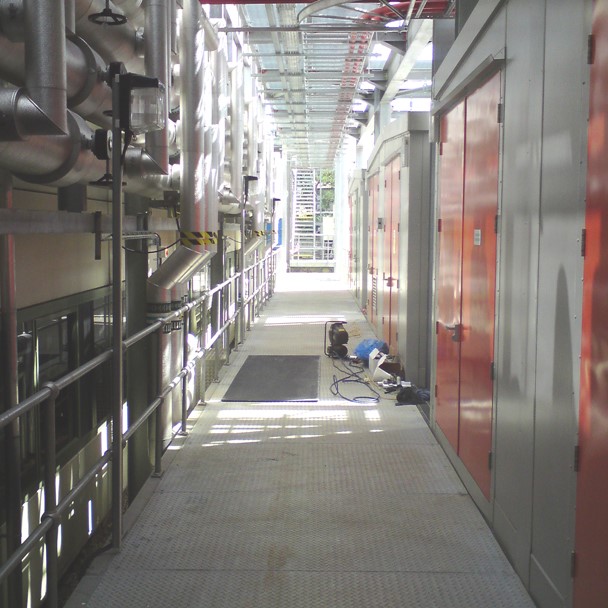 The client, a data centre operator was having issues with a steel chequer plate gantry. Valuable electronics needed to be wheeled across this gantry on trolleys and due to the existing uneven surface, it was causing unwanted vibration to sensitive equipment.